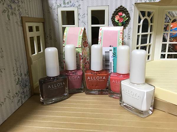 我目前有五瓶alloya,罐子的造型跟我傳統印象中的指甲油差不多,