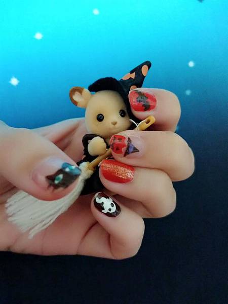 060的橘紅色(沒有亮粉,無名指的亮粉是另外擦上去的),還有045的咖啡色、047的白色,整個剛好拿來畫萬聖節主題