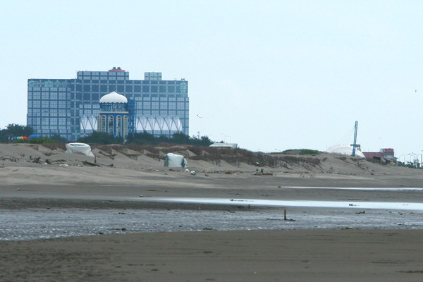 <<長鏡頭把南寮遊客中心跟美麗的環保焚化爐拉成了鄰居,貝殼公園也近在咫尺>>