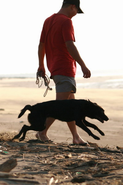 <<放開頸環的狗兒樂得在沙灘上蹦蹦跳跳的嬉戲>>