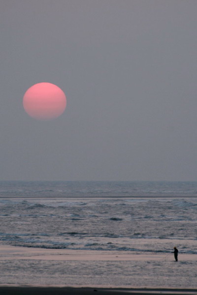 <<捕魚郎的身影,在即沒的夕陽下,顯如滄海之一粟>>