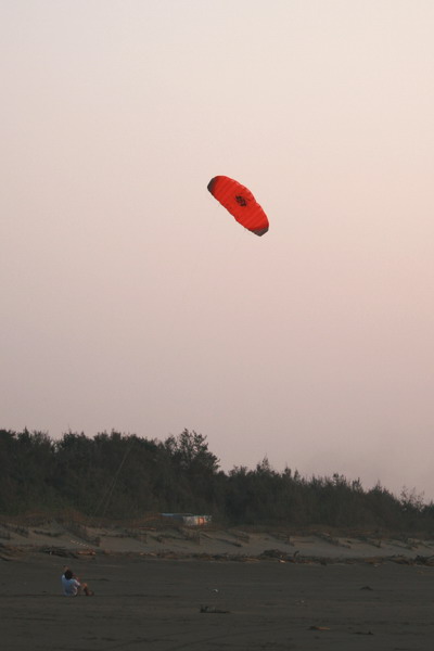 <<動力風箏,把人拖著犁田...是犁沙..>>