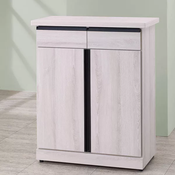Homelike 東尼2.7尺鞋櫃,溝槽式黑鋁合金飾條把手,採用五金緩衝後鈕,安全設計,可減少噪音又可避免夾手意外,抽屜實木抽牆採高級鋼珠滑軌,使用順手拉和更輕鬆不費力,活動層板設計,可以依需求調整高度,背板採用釘附式美背,清新百搭的白栓木紋搭配嚴選經久耐用的木心板材質,特殊立體鋼刷浮雕處理,東尼格混搭優雅的色調,提升居家生活質感!