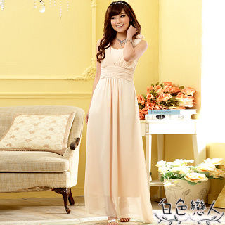 【白色戀人中大尺碼】香檳色優雅手工肩花V領收腰長禮服JK-0918 ![]() |