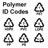 Society Of Plastic Industry (SPI) 將塑膠分成七類塑膠回收代碼 [正常使用/熱變形/連續耐熱溫度]