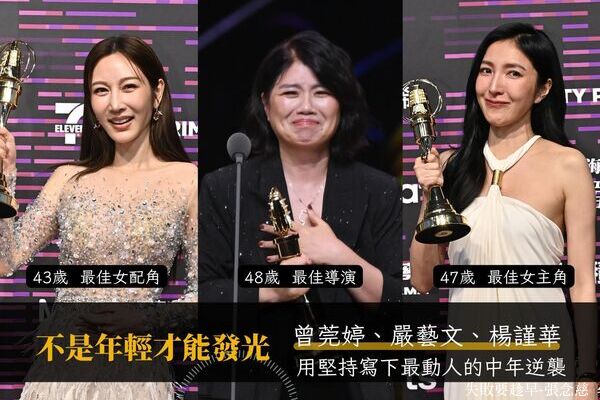 今年金鐘獎,是給中年女性最大的鼓舞。 47歲的楊謹華,入圍金鐘8次,終於摘下最佳女主角。 43歲的曾莞婷,演藝圈27年從未入圍,今年終於入圍終於摘下最佳女配角。 48歲的嚴藝文,摘下最佳導演,達成台灣...