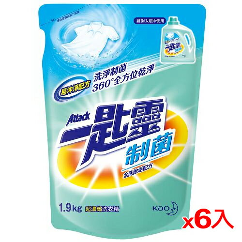 一匙靈超濃縮洗衣精補充包-制菌1.9L*6(箱)【愛買】