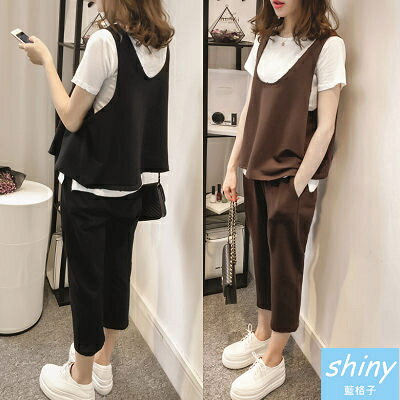 None, ~399超商免運 599折30 輸入代號 M7OJ-IPQJ-ZB18-R5YO【V0883】shiny藍格子-學院風.短袖上衣+背心+七分褲三件式套裝。在樂天市場的shiny藍格子有最棒的商品,是您省錢的最佳選擇。
