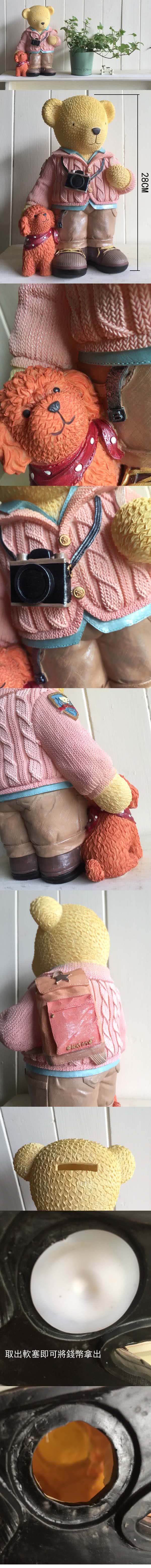 雙11特惠活動,搶到賺到:【BonBon naturel】花園裡的小熊-毛衣背包熊存錢筒-男-粉(擺飾-存錢筒)