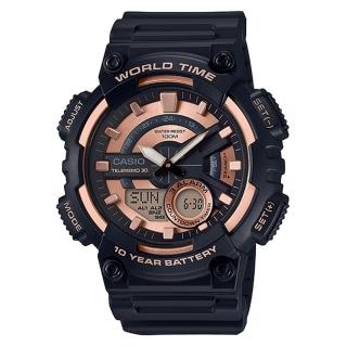 【CASIO 卡西歐】世界地圖設計造型概念雙顯錶-黑X玫瑰金(AEQ-110W-1A3)品質好嗎需要換電池嗎有防水效果嗎