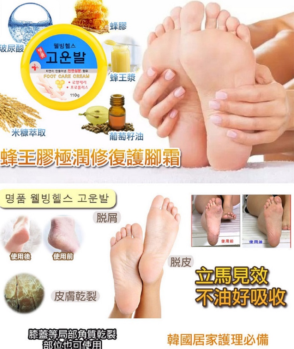 PTT鄉民【韓國美膚】WBH威必健 蜂王膠極潤修復護腳霜110g(6入超值組)限量,團購,限時,週年慶,禮物,優惠,【韓國美膚】WBH威必健 蜂王膠極潤修復護腳霜110g(6入超值組)特價,開箱,比價,活動,好評,推薦