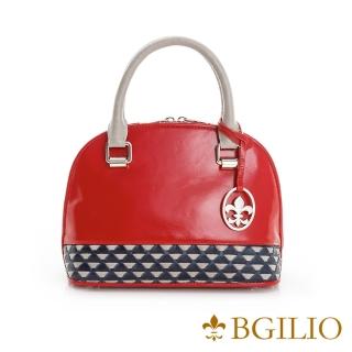 包包推薦【義大利BGilio】義大利蜡感牛皮雙色精品貝殼手提包-紅藍色(1944.003-01A)