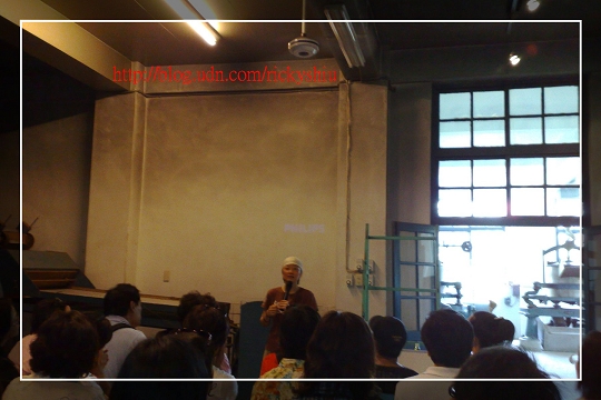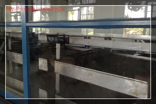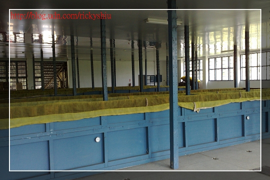 好不容易等到導覽人員走下去到坡道入口處,再把一車的客人帶上來,我們也順勢加入了人群中。在進行完簡短的戶外導覽後,我們一行人進到了製茶廠房內的空地,這就是將要進行室內導覽的簡報區。