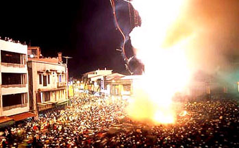 蜂炮約在下午六點半左右開始燃放,到八點~十點左右進入高潮。