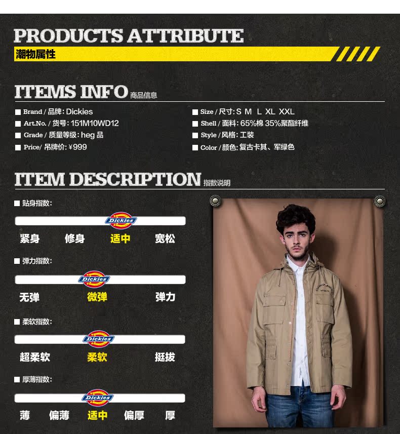 幫大家上網研究一番Dickies2015秋新款 棉滌印花M65軍裝夾克男士立領外套151M10WD12 - 43196536632推薦,開箱文,價格,規格,評價,報價,比較,推薦那裡買??