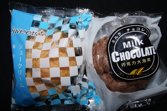 不久前在看相武紗季、速水茂虎道跟水嶋斐呂演的日劇《絕對達令》,前半段的故事中,看主角們吃著「外表雖然看起來很平凡,可是內在卻很有料」的泡芙,看的阿廣也超想吃的啦(很容易受影響)!可是糕點店好遠,好懶的去呀!這時忽然想到,前幾天去巷子口的全家便利商店換航海王公仔時,有在熟食區看到有賣泡芙!便跑去買了巧克力大泡芙跟鮮奶大泡芙這兩個口味的泡芙。