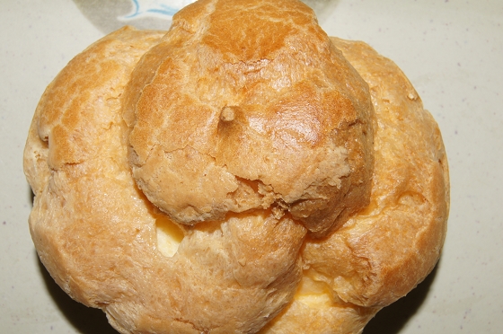 我猜這泡芙表皮可能因吸收袋內水氣而變濕軟 , 不過內餡看起來扎實綿密 , 好想嚐嚐喔 , 我餓了......