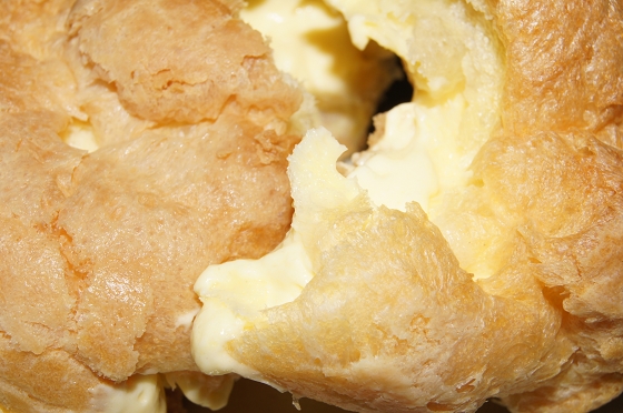 泡芙散發出一種接近餅乾與麵包之間泡芙專屬的香氣,外皮口感酥軟,內心濃郁的奶油充滿著鮮奶香,甜而不膩,好吃!
