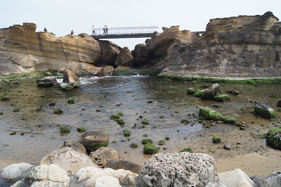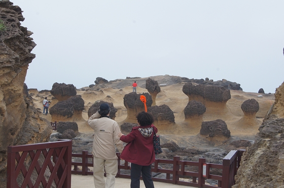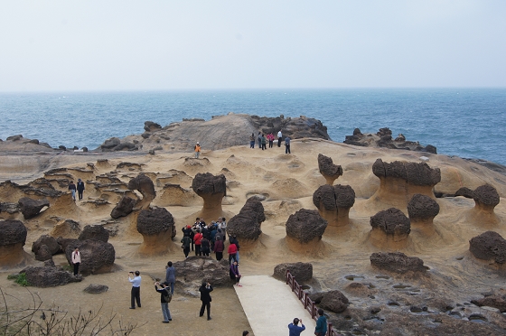 沒多久,我們到了野柳地質公園,這裡有很多有趣的地質景觀,觀光客超多!當然,我們也去跟快要斷頸的野柳女王頭合影,把她的美麗留進我們的影像中。