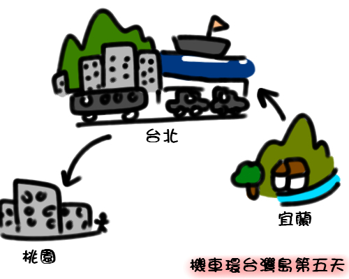 宜蘭/慶雲宮->台灣最東邊->東北沿海路線->基隆/碧砂漁港、基隆廟口->台北/野柳、台灣最北端、淡水->桃園/中壢