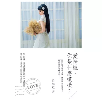 有別於一般兩性情愛書籍,《愛情裡,你是什麼模樣?》每篇小品裡都有你的影子,你在當中看見了自己──每個成長階段、曾經對不起的青春、曖昧的小故事,還有那些讓淚腺頻頻失守的情傷、那些煙火、那些離別,以及中年男女的騷動連連,沒有距離地與你的「心」碰撞、擦出花火。