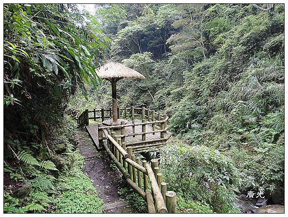 山谷中有一個別緻的小亭子,剛開始並不明白在此修築一小涼亭的用意,帶回過頭來向高處眺望,才明白此一涼亭的修築別有用意。