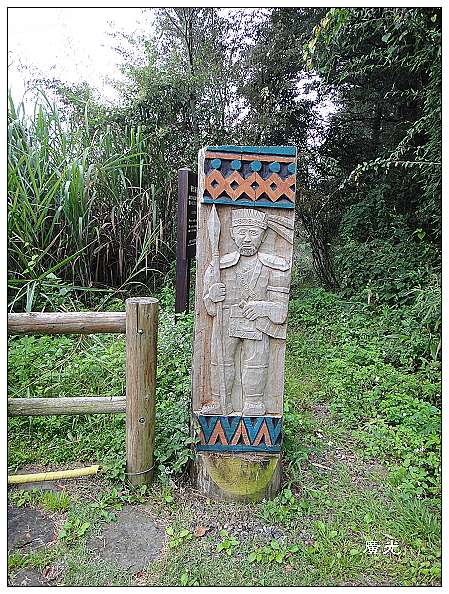 舊古道路口有說明牌,還有一尊原住民的雕像,十分有原住民特色。