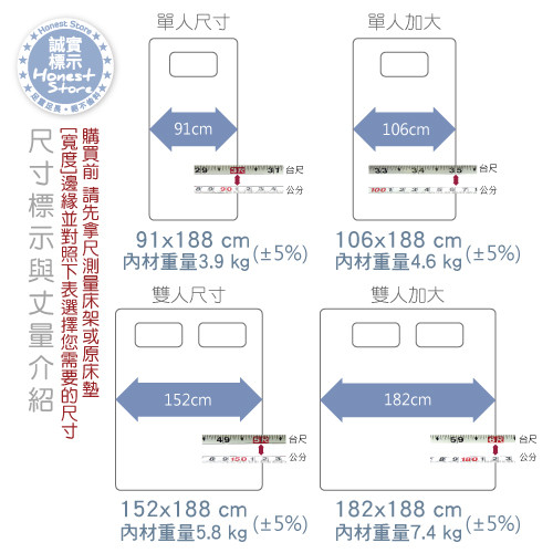 【尺寸】182cm×188cm×5cm(±5%)