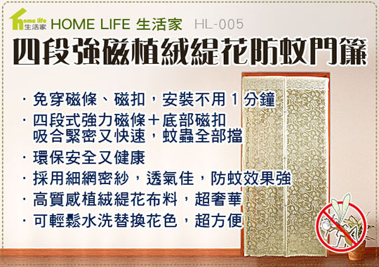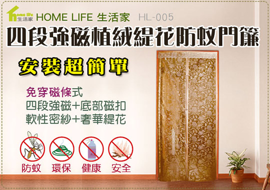 防蚊大作戰~【第五代四段式強磁珍珠緹花防蚊門簾】直接將蚊蟲大軍擋在門外,不再隨處啪來啪去!只要229元起,即可享有【HOME LIFE】第五代四段式強磁珍珠緹花防蚊門簾/魔鬼氈等組合,門簾顏色可選:奢華典金/淡雅鵝黃