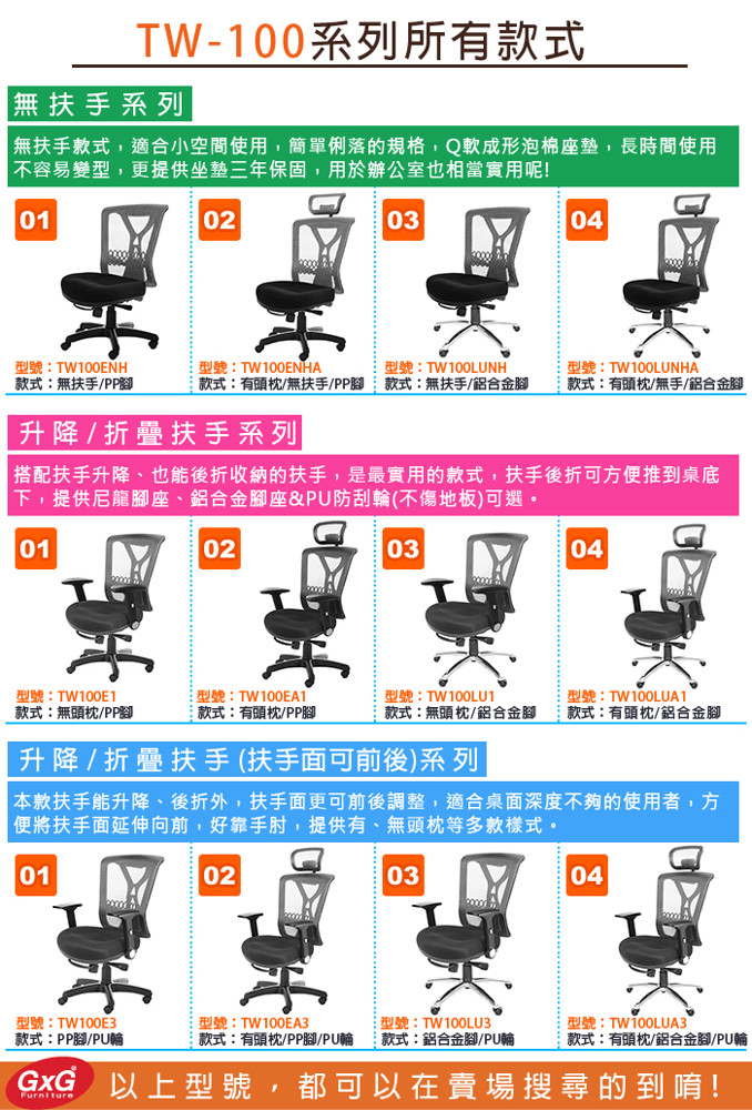材質:高透氣彈性網布、塑鋼、強化PP、鐵件烤漆、鋁合金