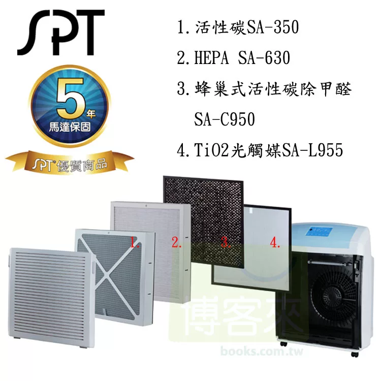 聽朋友說尚朋堂 空氣清靜機 SA-9955U 蜂巢式活性除甲醛濾網SA-C950,產品很不錯!價格實惠又好用,我知道在網路上買比去實體店面買會便宜很多,