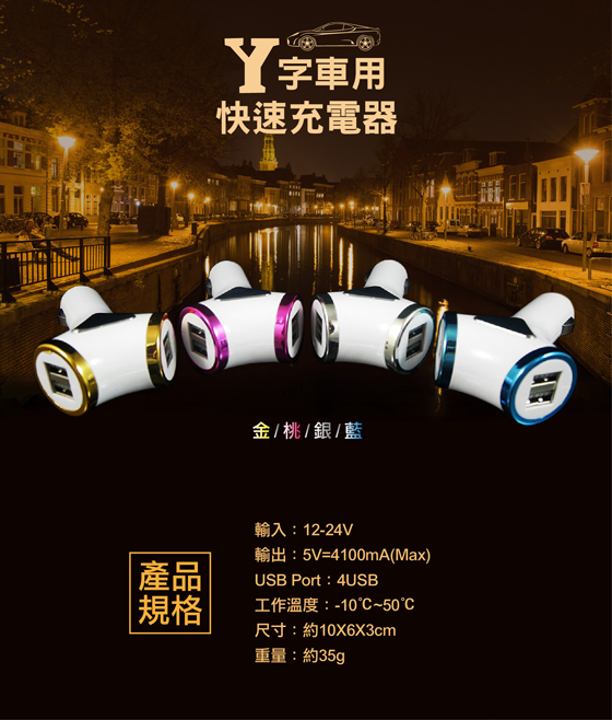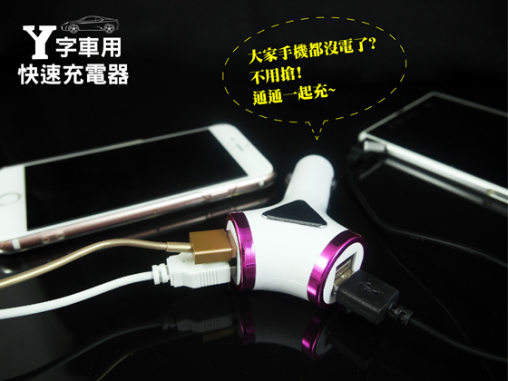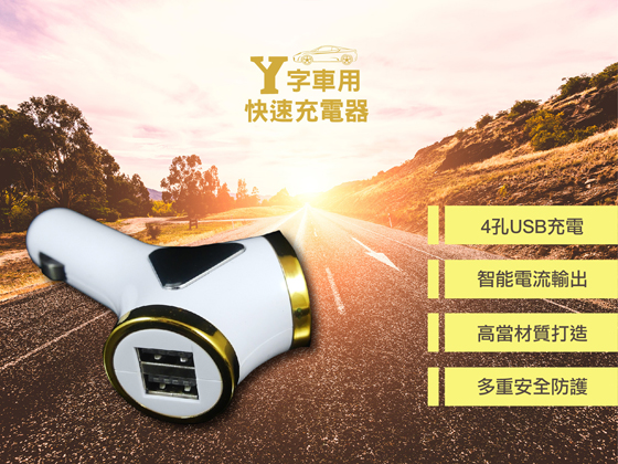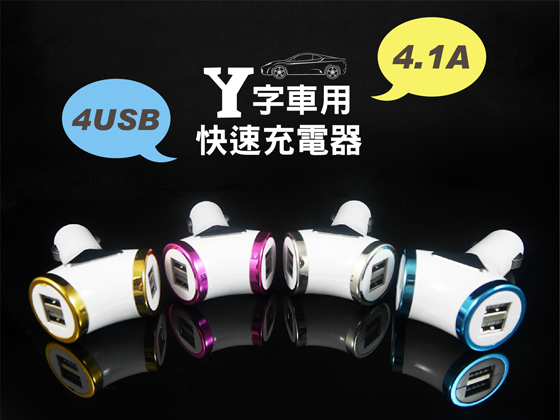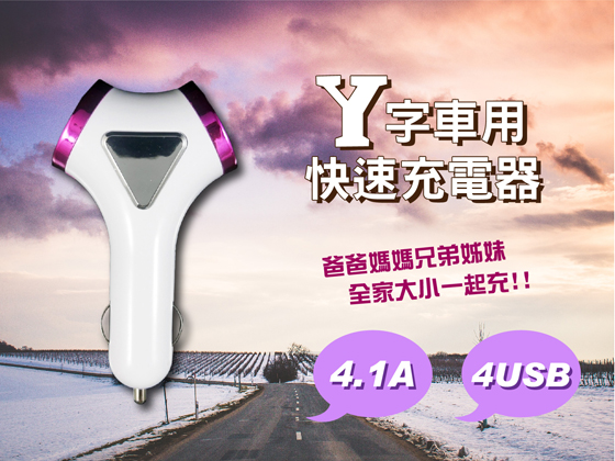 購買的網址在這裡---4.1A Y字型4孔USB車用快速充電器