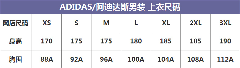 阿迪達斯羽絨的充絨量克數是對應尺碼的大小,所以每