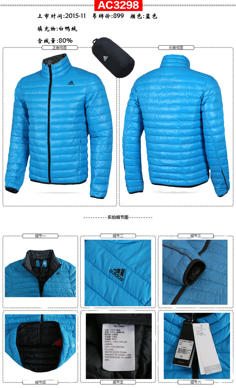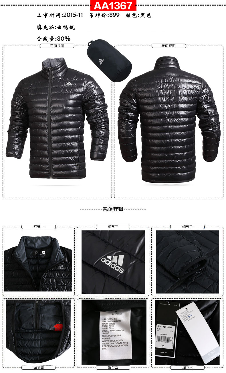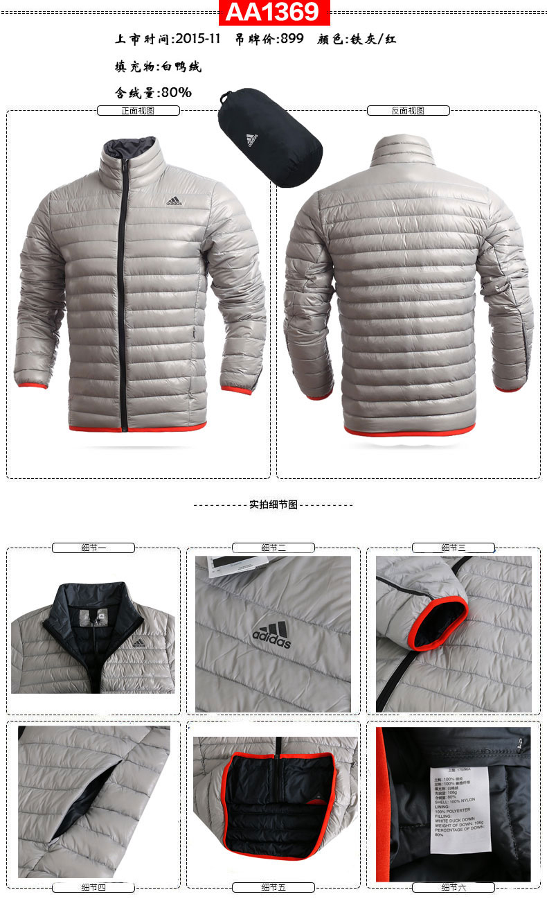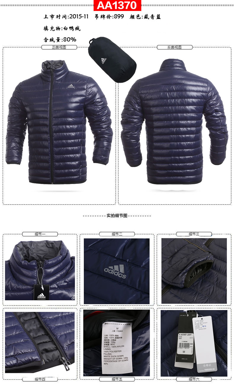 發現網購價格最便宜,Adidas阿迪達斯羽絨服夾克男2015阿迪運動休閑外套AA1370 AA1367 - 521289676927還曾在 天貓購物商城 類造成搶購熱潮,