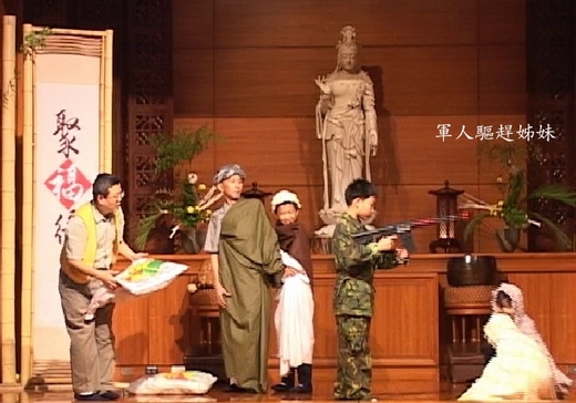 軍人:好了!發完了!通通回去,沒有東西了(跟志工一起走下舞台)