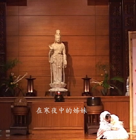 (兩個小女孩躲在舞台的一角,緊縮著身體,表示非常的冷)