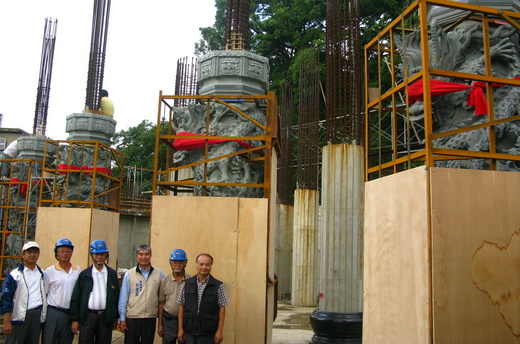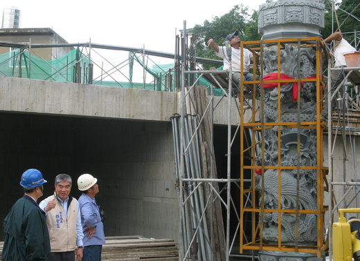 【楊梅訊】延宕近十年的錫福宮重建工程,在前任傅標榮與現任鎮長彭聖富的奔走下,25日順利安置遠從福建省運回的四根龍柱,許多民眾無畏風雨趕往工地目睹透過升降機將龍柱吊起安置的過程,彭聖富樂見於錫福宮的順利重建,帶給地方平安與祥和,他希望地方民眾能放下身段共同參與,以帶動地方繁榮。