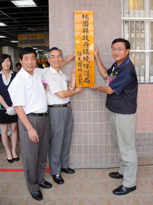 掛牌儀式27日上午在大園鄉公有零售市場的一樓廣場舉行,由李朝枝副縣長主持,他除了代表吳志揚縣長感謝大園鄉公所和大園鄉代表會,提供零售市場4樓的空間供縣府環保局設置「桃園縣政府環境保護局駐大園辦公室」,派駐人員就地辦理民眾的申請案件,也要求環保局同仁要以感恩的心,以「簡化申請流程,加速審查作業」,回報大園鄉親。