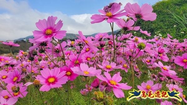 今天從捷運劍潭站搭小19公車到我家花園站牌下車,往前走約350公尺,開始欣賞鵝尾山水田波斯菊花海&平菁街櫻花初開了~~ 鵝尾山水田波斯菊花海美不勝收,現在有不少粉櫻初開,天氣也不錯,藍天白雲,微風輕拂...