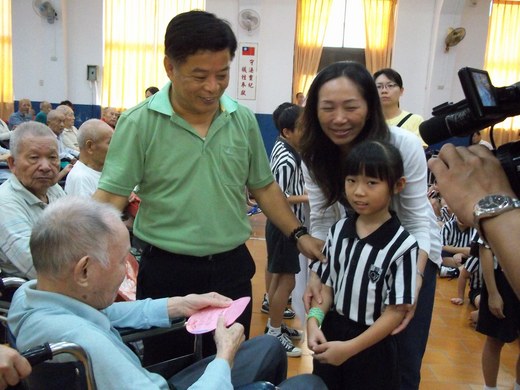 小朋友們由該校副董事長李佳芬及師長帶領,在榮民伯伯前表演充滿