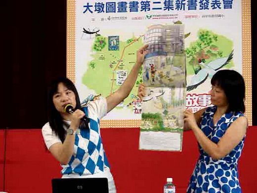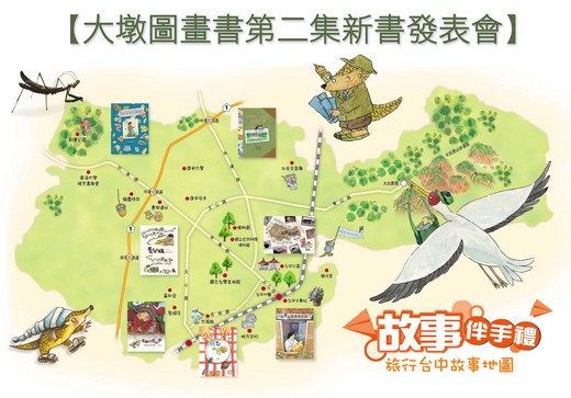 在新書發表會上,創作者米雅、莊世瑩兩位老師都是台中市的居民,親自分享新書的故事和創作過程。另外,今年也延伸去年「故事伴手禮」的活動主題,結合第一集四本圖畫書內容,將台中市的名物特產、民俗節慶、歷史遺跡、生活時令、人物故事、自然生態、文化遺跡串聯起來,以閱讀「旅行台中故事地圖」的概念整合起來。此舉也突破了繪本「平面」的閱讀限制,將《大墩圖畫書》系列串聯、擴展成讀者可實際接觸的生活體驗和想像,這種穿梭古今、且兼顧區域特色的「無疆界」呈現方式,也打造出台中市豐富、迷人又深具魅力的文化面貌。