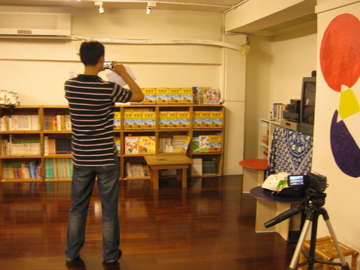 在採訪當天,楊老師超級可愛的,原本我們排好一整面的《重要書》,要請老師坐在前面錄影,他一看,直說:「這樣太刻意了。」