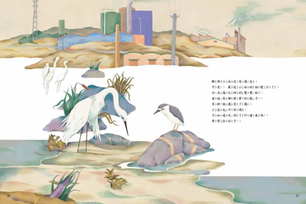 《尋找綠樹林》是許玲慧和江彬如合作的作品,時隔十年,他們為這本書添加了新的風貌。封面的白鷺鷥,其實是帶著「希望」在眺望遠方的。或許仍在提倡生態教育和環境教育的現在,是需要從另外一種「聲音」和角度去思考。