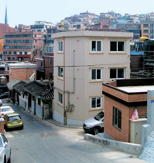 ▲首爾江北區-現代的磚頭水泥房與古老的青磚瓦片屋就這樣相安無事的相處著。