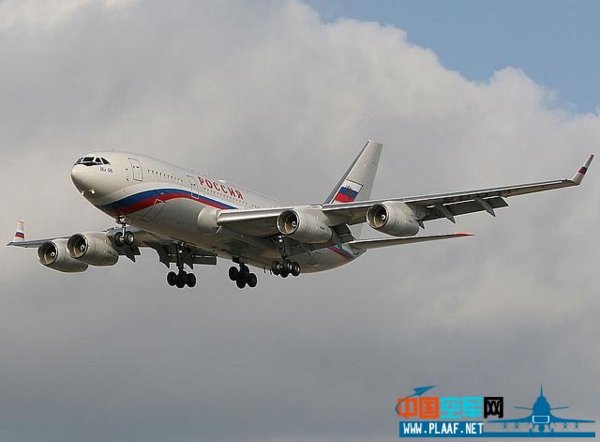 俄羅斯「空軍一號」雖比美國的遜色,但也頗豪華氣派。前任總統普京的專機被俄羅斯人稱為「飛行的宮殿「」。這是俄羅斯總統專機一架價值為2億美元的「伊爾-96」新型專機,機長
