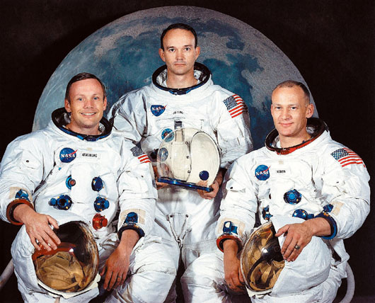 NASA在1969年5月公布登月三人行的照片:阿姆斯壯(左起)、科林斯、艾德林。