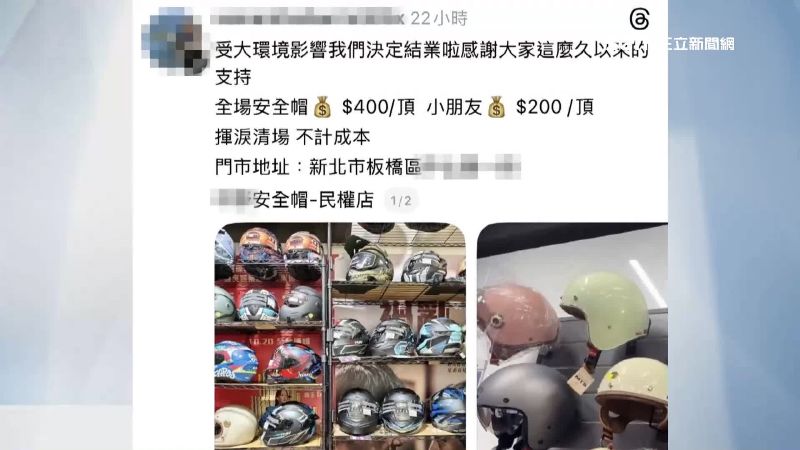 業者表示連鎖店知名度很大詐騙集團就做不實的消息。安全帽是機車族必備用品,最近有知名連鎖安全帽店在社群平台上發文,宣稱「揮淚清場、不計成本」,一頂安全帽最便宜只要200元,消息一出吸引不少民眾上門。但不少人到店後卻愣住,呆站在門口才發現,店家不只沒有特價甚至還持續招募員工,根本沒有歇業。