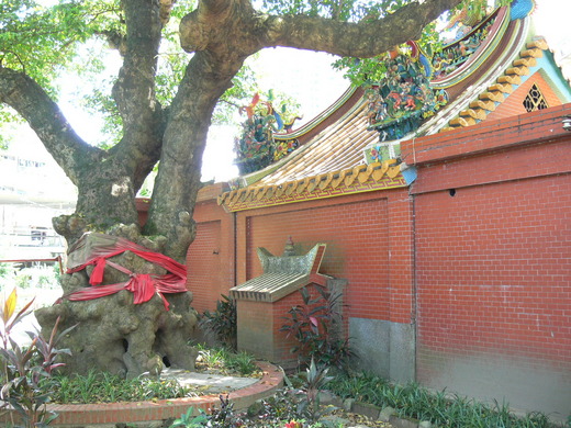 縣府出版的老樹手冊,介紹添福宮茄苳樹樹高約12公尺、胸圍4.6公尺,要3名成人才能合抱。