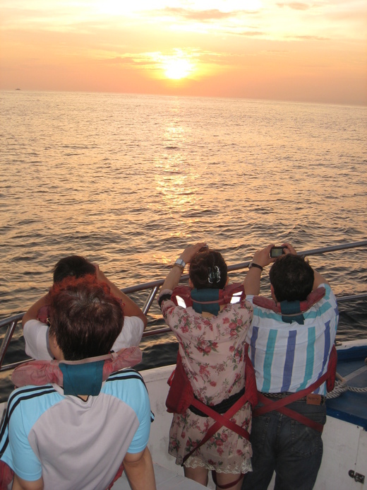從海岸看日出與海上看日出的味道不一樣。搭船出海看日出有朝聖的感覺,日出的「那一刻」感受較強烈;在海岸看日出比較沒有feel,但金光沿著海面射向岸際,那景象也是挺動人的。