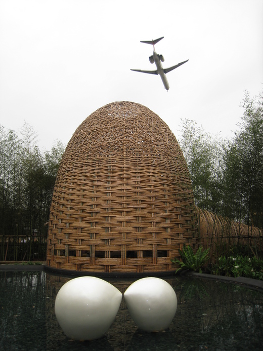 先解釋一下,花博美術園區這個名為「知竹常樂」的裝置藝術作品,在花博開幕之前曾是新聞焦點──有人認為這個「放大的雞籠」造價太貴了。